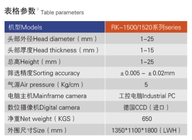 3、檢測速度:根據(jù)物料及供料系統(tǒng)而定,最快每分鐘可達300-1200個。